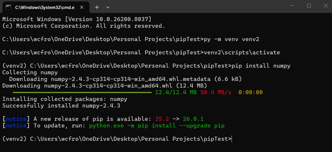 Python virtual environment (venv) and pip package manager