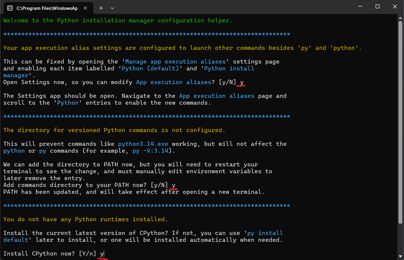 I believe this is the most direct and pedagogically optimal combination. Other options may be more efficient, but they come at a cost of having layers of abstraction that may confuse rather than elucidate. As you become more proficient, you may wish to explore other options (e.g. vscode, pycharm, poetry, uv, conda). Here’s the step-by-step instruction for installing python: