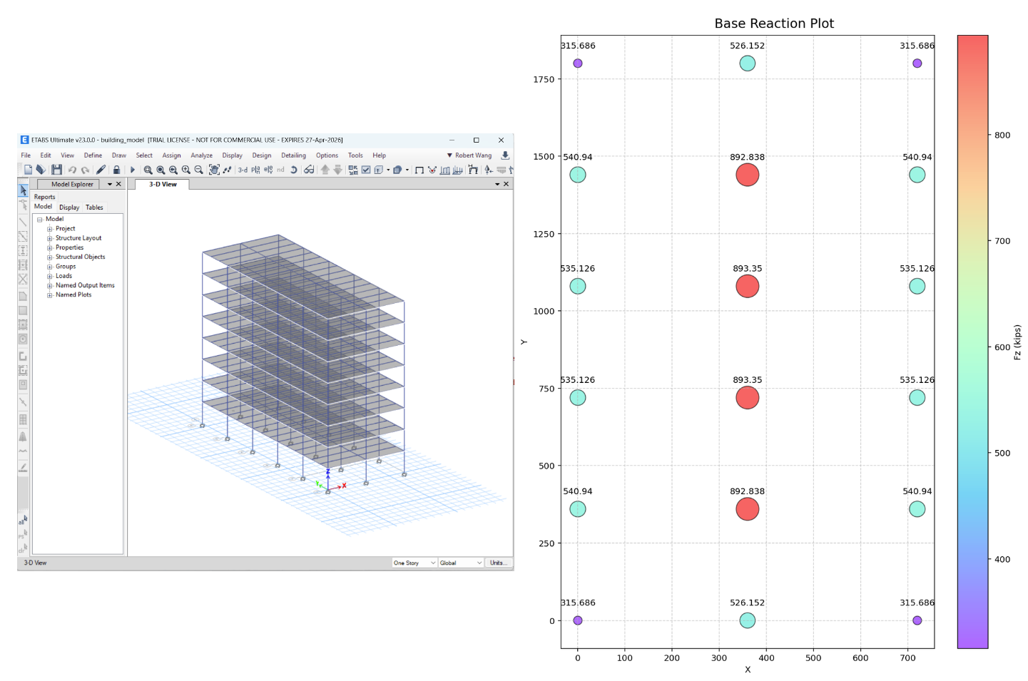 Here’s my joint reaction bubble chart. It makes sense that reaction is lowest at corner columns and highest at interior columns.